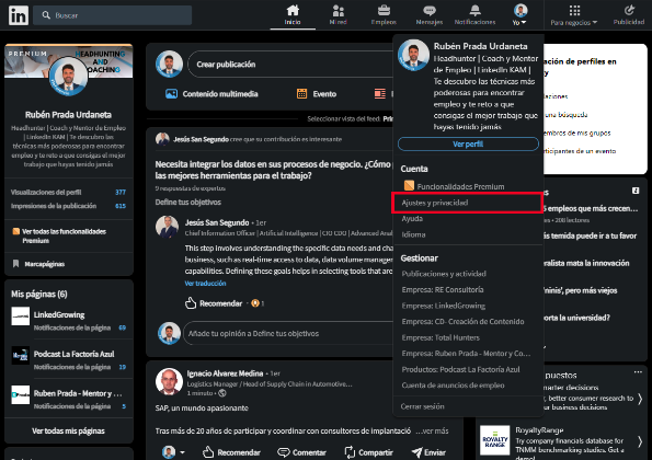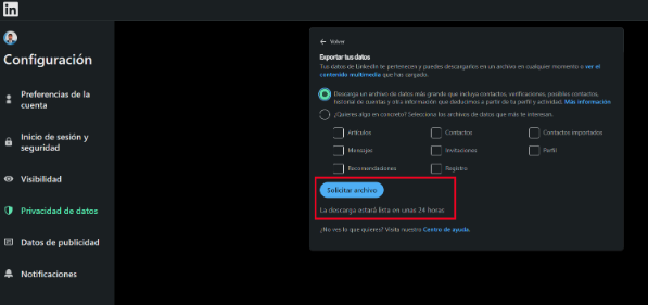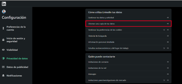 Estos son los pasos detallados para conseguir una copia de tus datos de LinkedIn. Tomad nota: