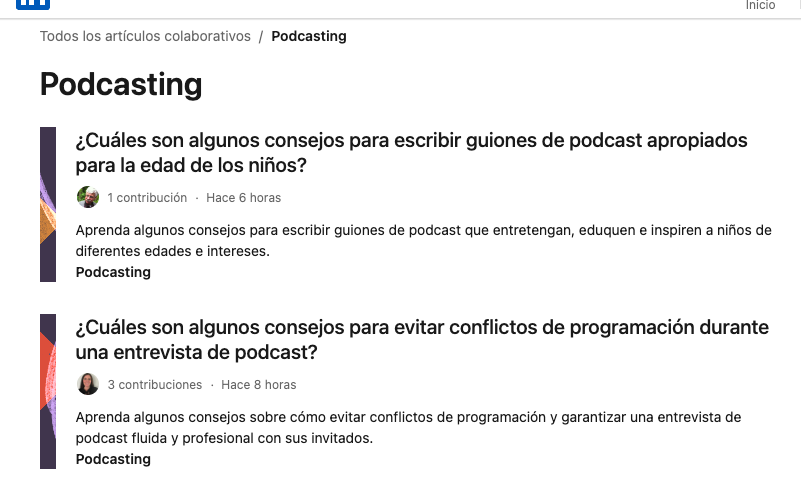Si entramos en alguno de ellos es posible que nos aparezca la opción para empezar una contribución. Decimos posible porque, como muchos de los servicios que incorpora LinkedIn, tal vez algún usuario no tenga esta opción.