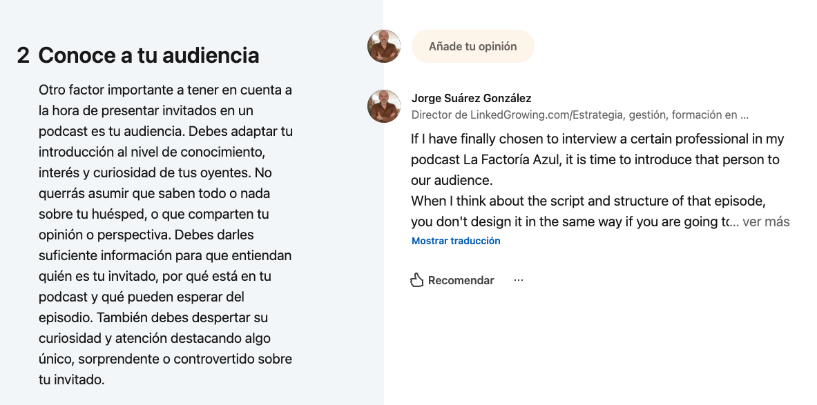 Tal cuál lo explica LinkedIn la base de esta nueva herramienta es aprovechar y aunar los conocimientos de la comunidad de una forma novedosa. Se parte de ideas para conversar generadas por IA (sí, otro ejemplo más de inteligencia artificial en la práctica) que, junto con el equipo editorial de LinkedIn dan la base al artículo. A partir de ahí, se invita a una selección de expertos para configurar los artículos con sus aportaciones.
