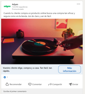 Otro aspecto diferenciador a tener en cuenta es el marco en el que se muestra tu mensaje. En LinkedIn, el usuario está rodeado de contactos profesionales, empresas y líderes de opinión. La percepción es más seria que en otras plataformas, y esa credibilidad se transfiere a tu marca. En marketing B2B, ese contexto puede marcar la diferencia entre ser percibido como un referente o como un simple anunciante más.